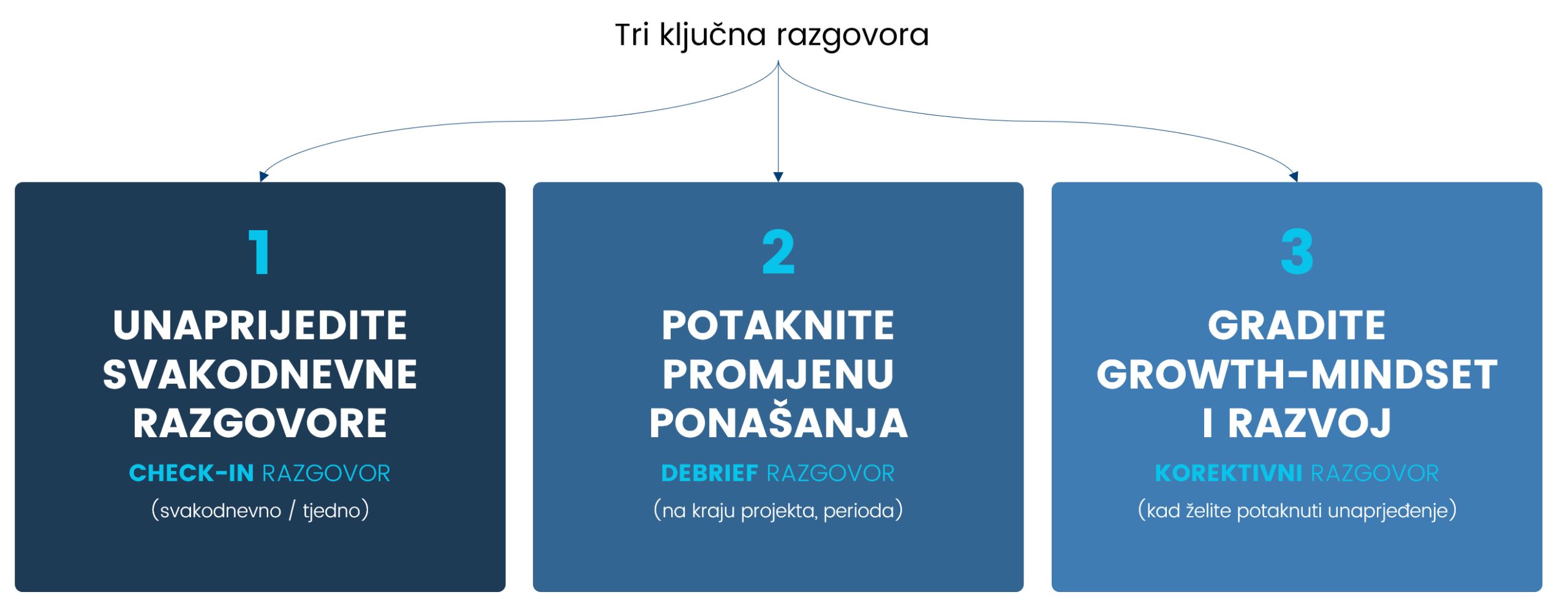 - “KAKO NAPREDUJEMO” razgovor: emocionalno inteligentno strukturiranje i vođenje dnevnih razgovora o napretku prema ciljevima